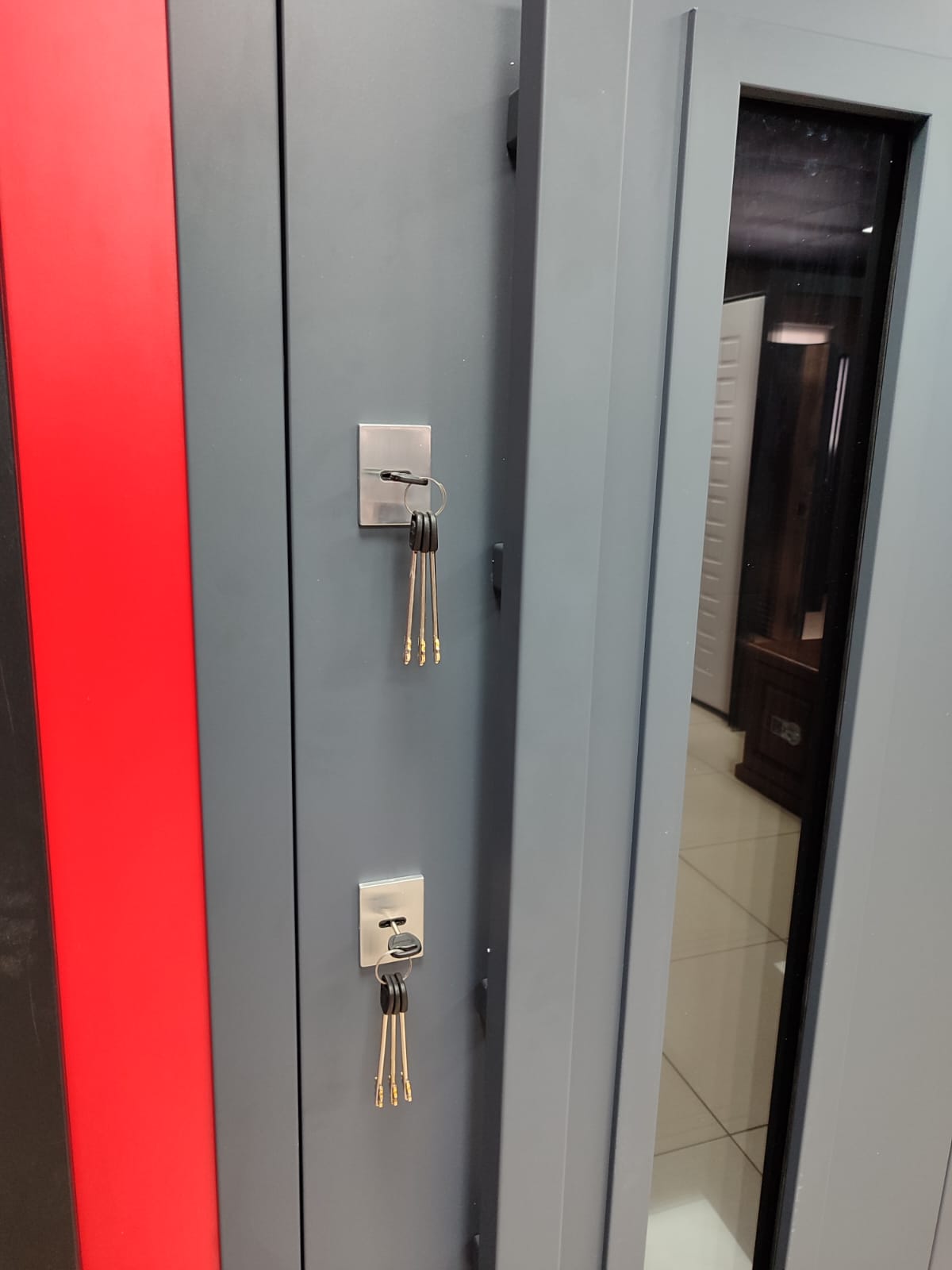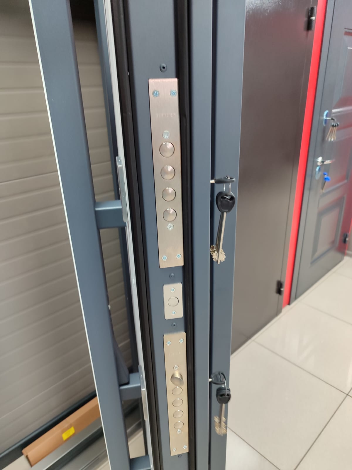 Дверь комплектуется двумя сувальдными замками Гардиан наивысшего класса безопасности и ночной задвижкой. Вся конструкция двери покрыта цинковым грунтом перед покраской, а порог дополнительно защищен накладкой из нержавеющей стали, что гарантирует устойчивость к атмосферным воздействиям.